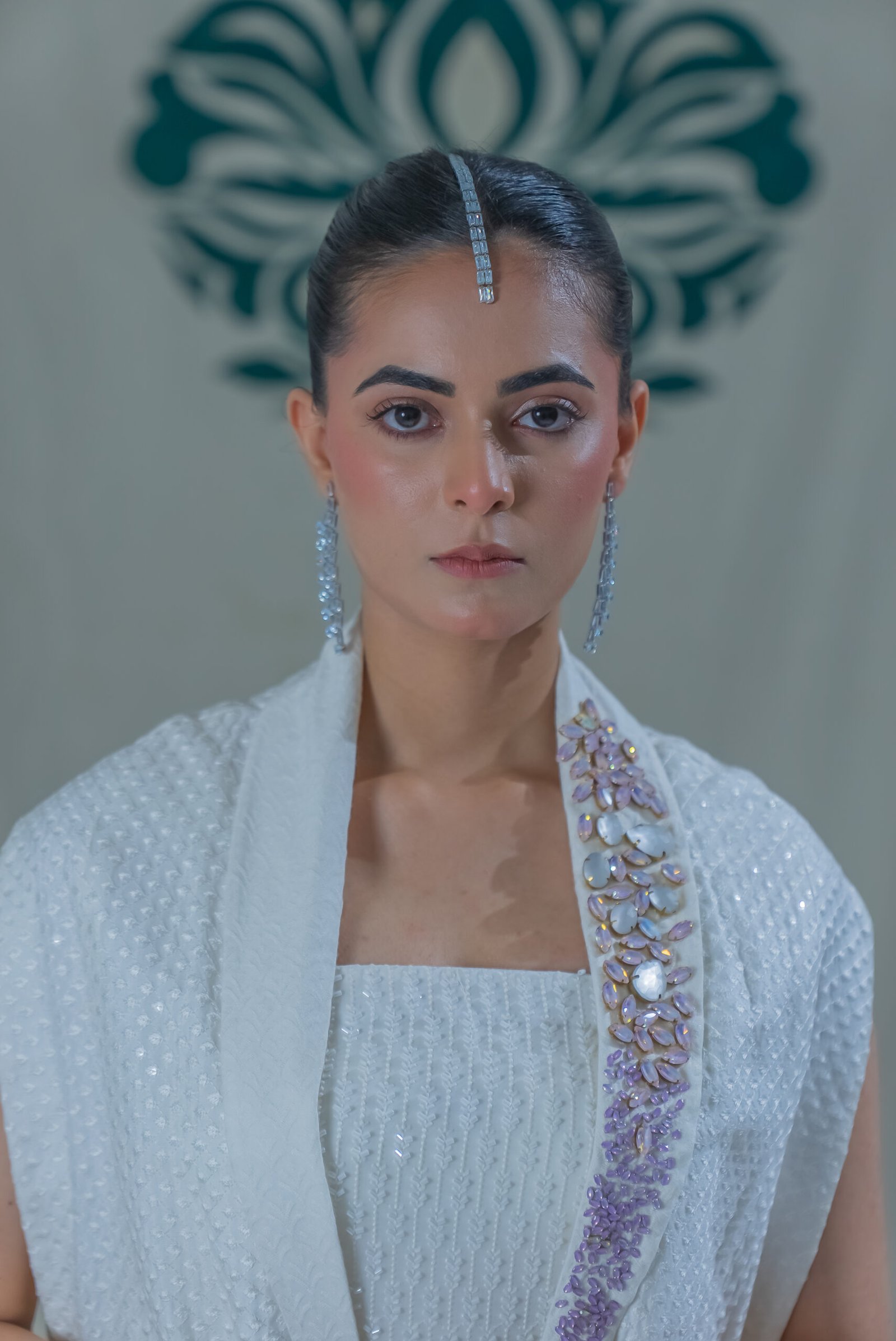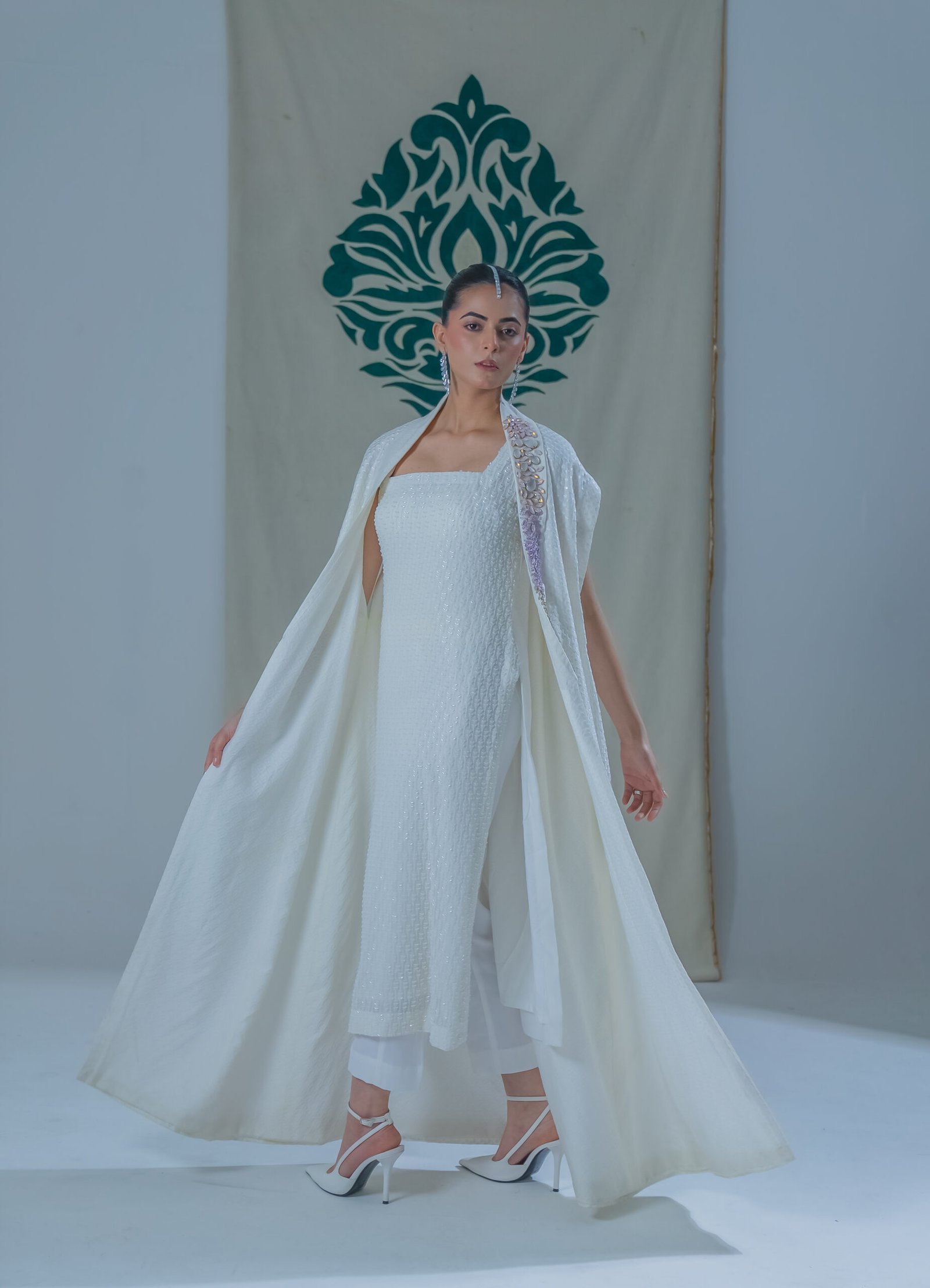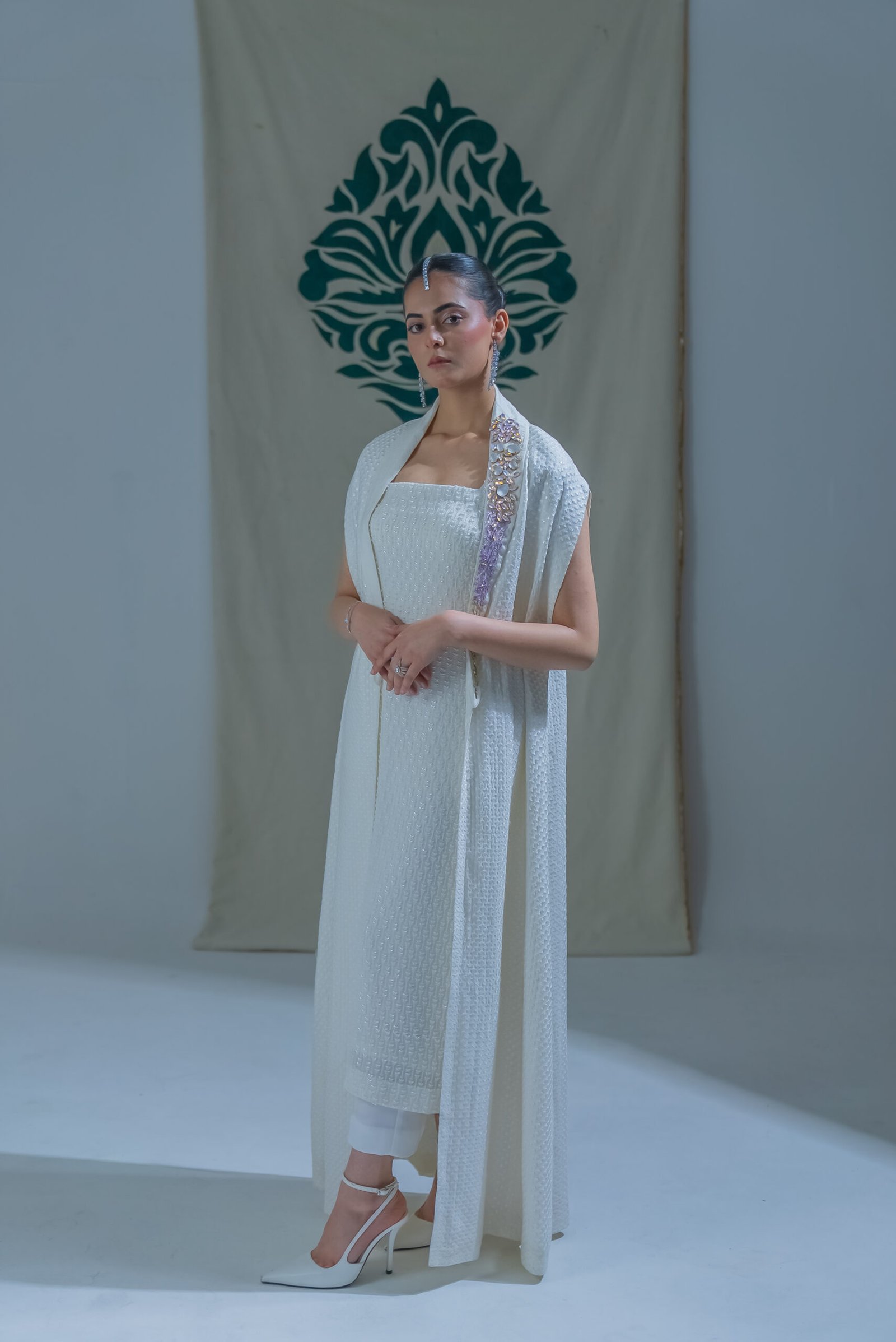Fabric – banarasi silk jacket with subtle embroidery , georgette kurta with hand embroidery